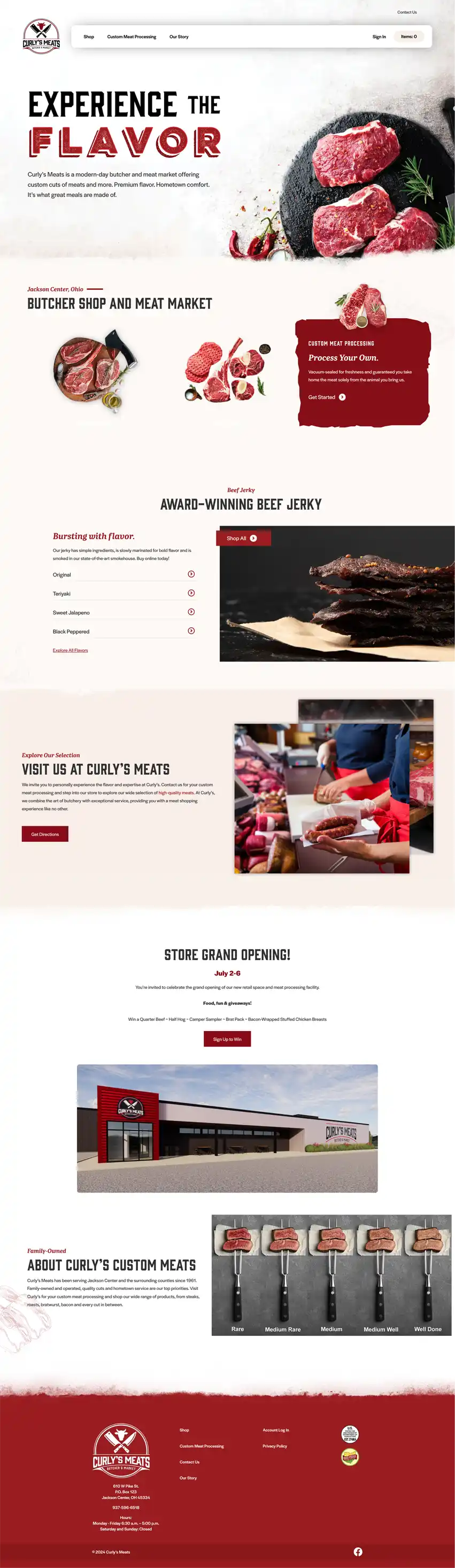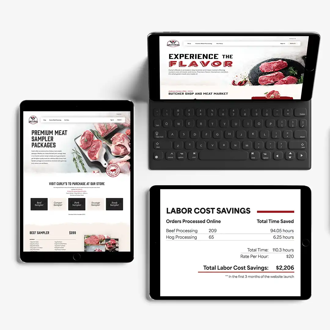 Curly’s Custom Meats, a family-owned and operated business since 1961, is a custom meat processing shop and meat market offering a wide range of products, from steaks and bratwurst to bacon and every cut in between. For its company expansion plan, Curly’s turned to Marketing Essentials to help develop a new website, logo, brand messaging, and promotional strategy as it built a new meat processing facility and entered the retail space with a new meat market and e-commerce sales.